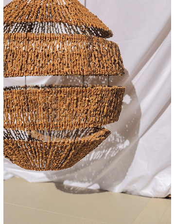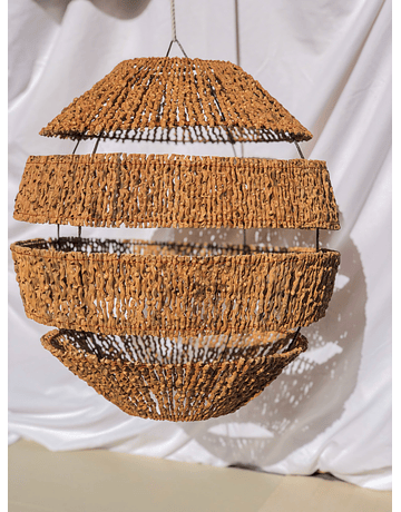 Hecha a mano por nuestros artesanos de Ayapel tiene los espacios perfectos entre las ranuras para que deje salir una luz cálida y acogedora. Ideal para poner como pieza principal.