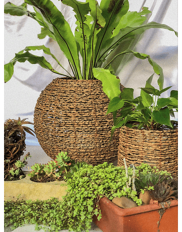Recomendamos no poner la planta directamente sobre el canasto, en vez, meter la matera adentro y sacarla para el riego. Asi evitamos que la fibra se moje y prolongamos su duración.